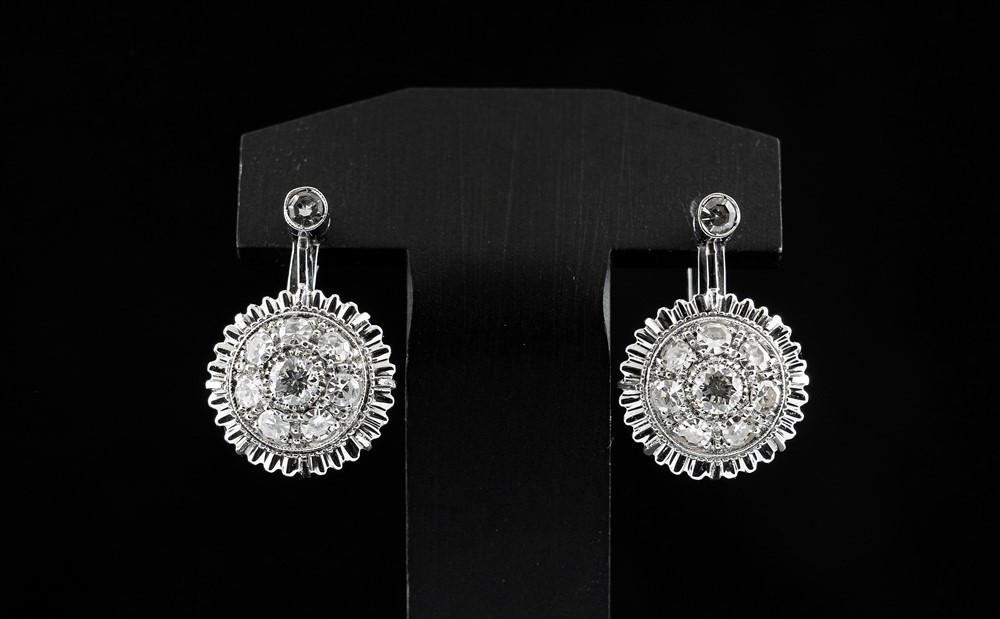 Pedras: 2 Diamantes talhe brilhante redondo 0.40ct e 16 Diamantes talhe oito/oito 0.80ct