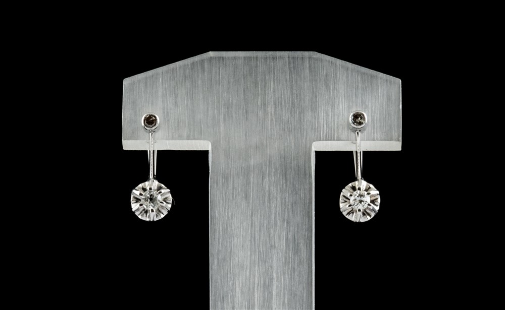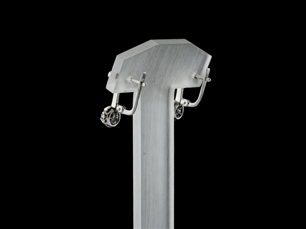 Pedras: 2 Diamantes talhe brilhante redondo e 2 diamantes oito/oito